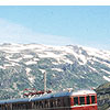 Bei schönstem Wetter am 22.07.1997 fährt der ET 25 015 a/b kurz hinter dem Bahnhof Finse in Richtung Bergen.